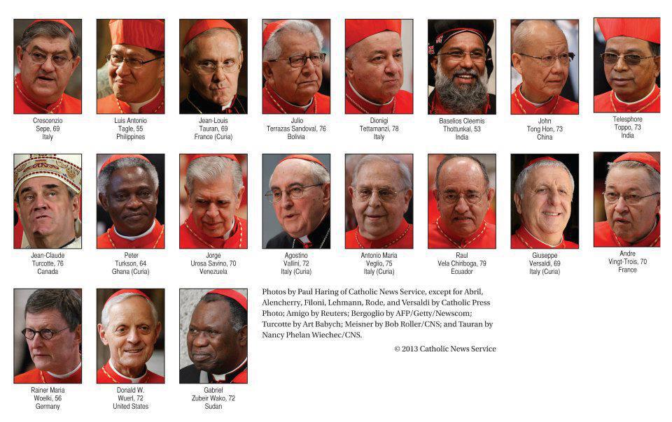 All the 115 Cardinal Electors of the 2013 Papal Conclave which will begin on Tuesday afternoon, 12 March 2013. All photos and arrangements were by Catholic News Service.